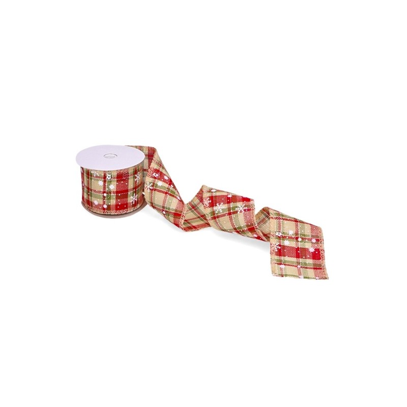 WSTĄŻKA TKANA "ŚWIĄTECZNA KRATKA" 2cm, 4cm/10m
