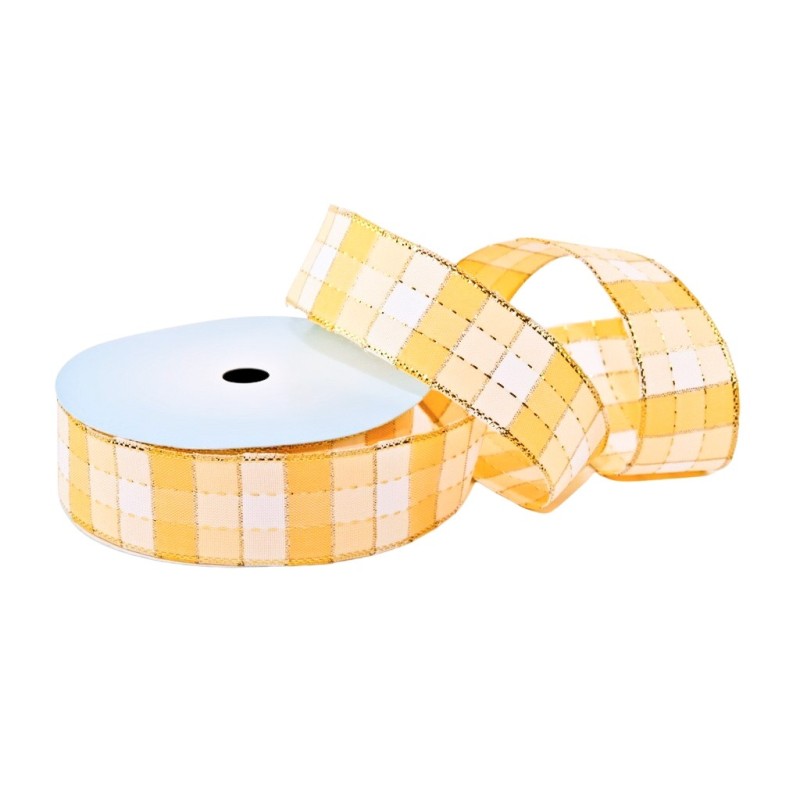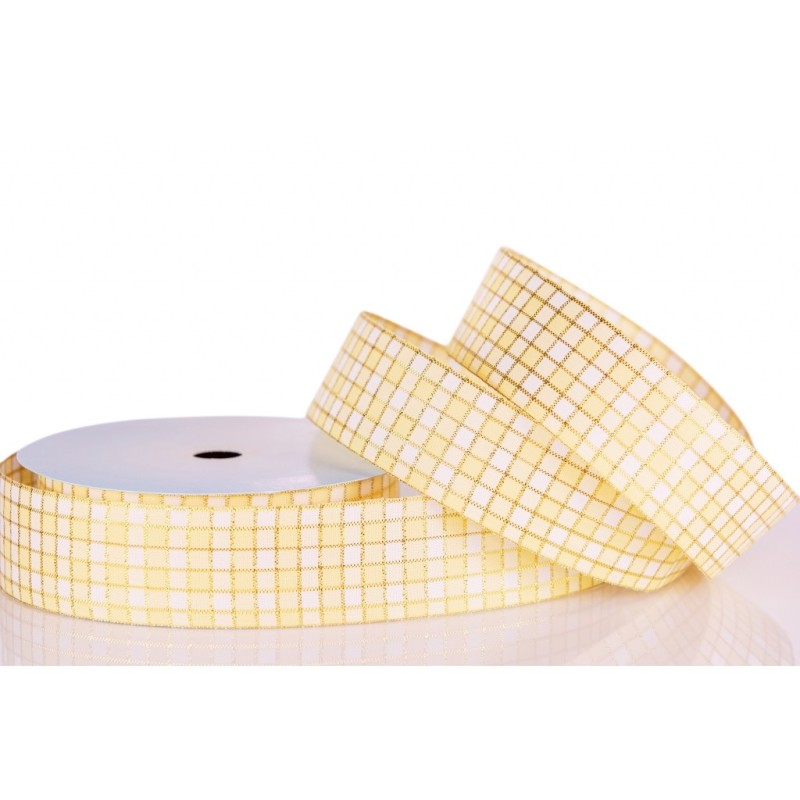 WSTĄŻKA PP ZE WZOREM "KRATKA" ZE ZŁOTYMI PASKAMI 3cm/50yd