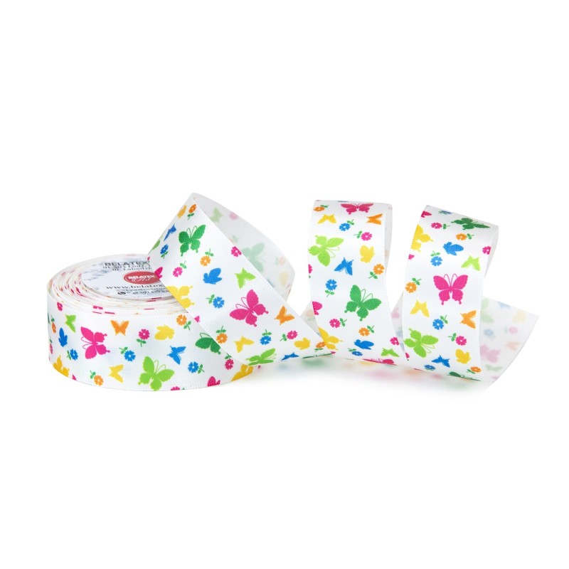 Dodaj do koszyka WSTĄŻKA MATERIAŁOWA Z DRUCIKIEM DRUKOWANA ZE WZOREM "MOTYL Z BROKATEM" 4cm/10m 15,50 zł
