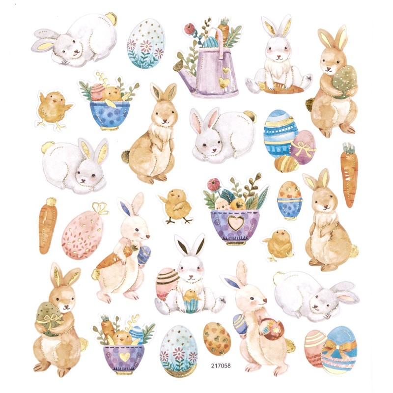 NAKLEJKI OZDOBNE Z BROKATEM "PISANKI I ZAJĄCE" 1opak./56szt.