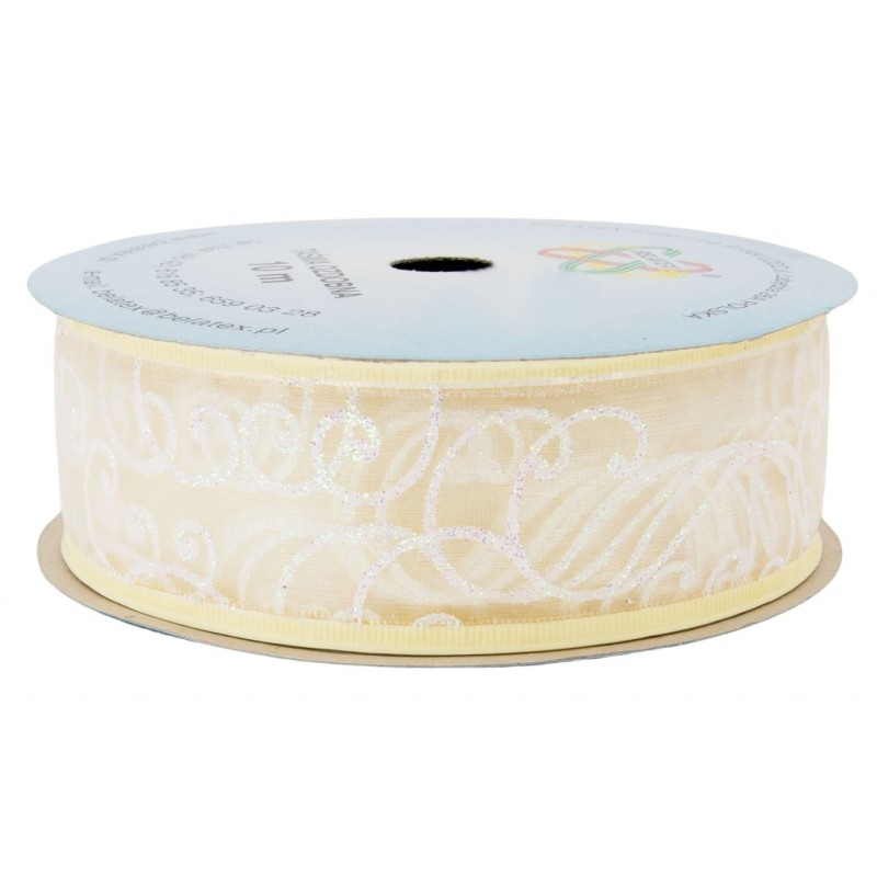 WSTĄŻKA MATERIAŁOWA Z DRUCIKIEM Z BROKATEM ZE WZOREM "ORNAMENT" 4cm/9m