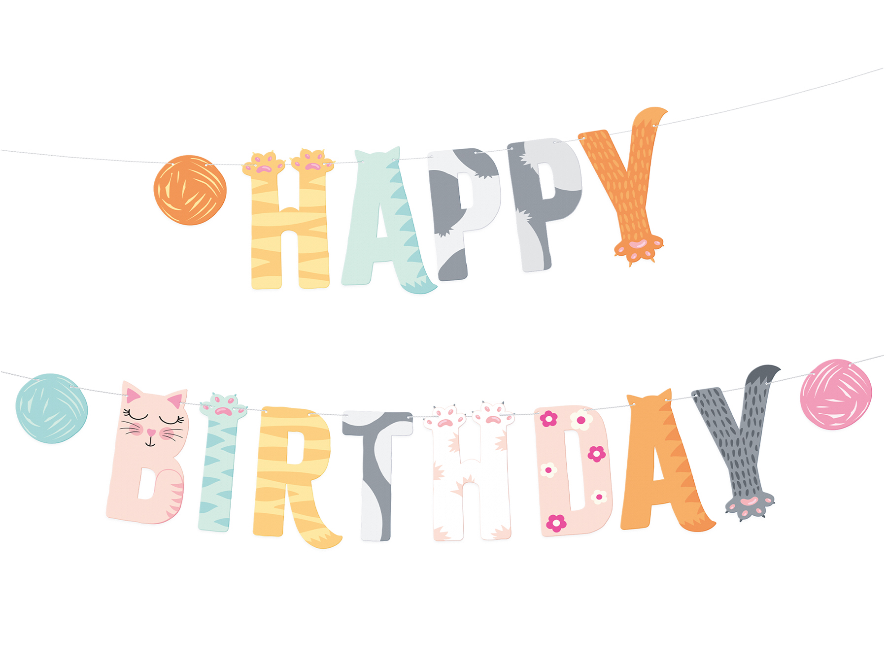 Uroczy BANER HAPPY BIRTHDAY "KOTKI" to szybki sposób na stworzenie wesołej atmosfery. Dekoracja jest lekka, łatwa w montażu i wielokrotnego użytku – idealna do ozdobienia ścian, okien, drzwi czy stołu z przekąskami. Świetnie sprawdzi się na imprezach tematycznych, zabawach dla dzieci w domu, w szkole lub w przedszkolu. Baner składa się 13 liter tworzących napis HAPPY BIRTHDAY oraz 3 grafik w postaci kłębków włóczki.